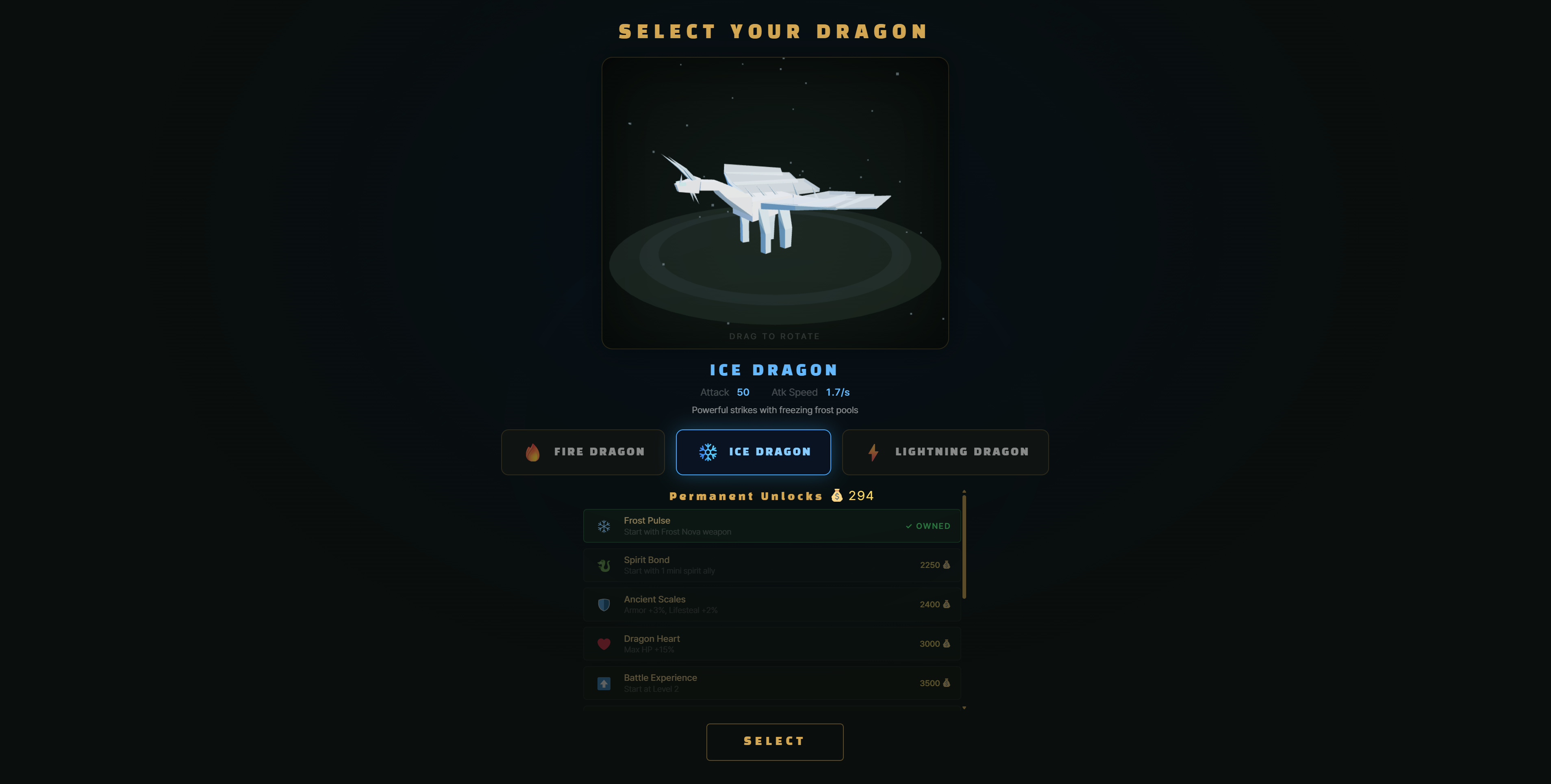 Choose from 3 elemental dragons (Fire, Ice, Lightning), survive endless waves of monsters, evolve your weapons, and forge powerful master fusions.